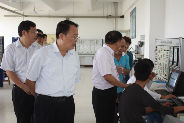 在我校,赵东升书记实地查看了电气焊、机床、单片机等实训车间,参观了学生作品展。赵书记详细询问了学校毕业生的升学和就业情况,对学校建设与发展、学科的设置以及办学理念提出了更高的要求。