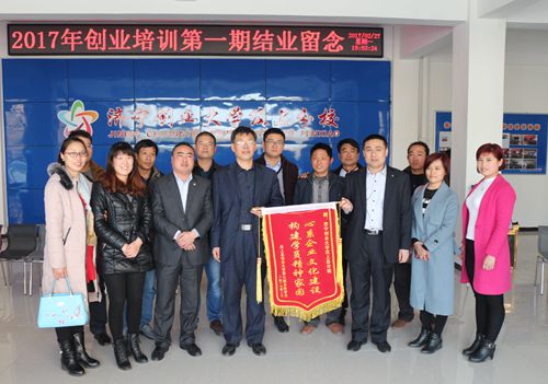 2月27日,济宁创业大学汶上分校2017年第一期创业培训全体学员在结束本次的学习后,将一面绣有“心系企业文化建设,构建学员精神家园”的锦旗送到创业大学,感谢我校工作人员在组织创业培训中无微不至、任劳任怨,为他们创造了良好的学习环境,使他们学到了实实在在的知识和技能,将创业就业梦想从小天地中放飞到更广阔的舞台。