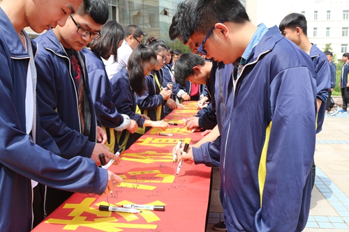 仪式在雄壮的国歌声中拉开帷幕,14、15级全体同学举起右手庄严宣誓,宣告十八岁青春的到来,表达感恩师长,励志成才,创造人生辉煌的决心和渴望。李同斌校长在致辞中,祝贺同学们光荣跨入青春行列,勉励同学们要勇于担当、勤奋学习、严格自律、学会感恩,懂得坚强,迎接人生挑战,创造人生辉煌。仪式最后,举行了“践行社会主义核心价值观,做文明中职生”签名活动,进一步引导学生做社会主义核心价值观的宣传者、实践者,争当文明守纪好学生。