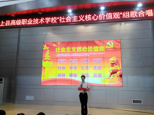 为深入贯彻习近平总书记关于弘扬社会主义核心价值观的重要讲话精神,用歌声传递价值观、滋润学生心灵,营造健康向上的校园文化氛围。5月11日,县高职校举办了社会主义核心价值观组歌合唱比赛活动。