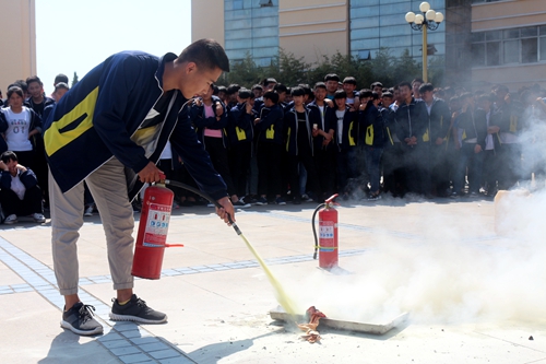 同学们到达预定安全位置后,消防安全专职老师向同学们讲解了灭火器的使用方法并加以师范。几位同学亲自动手体验了使用灭火器正确快速灭火的办法,效果显著。