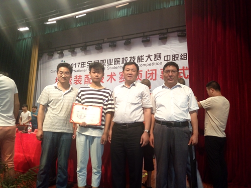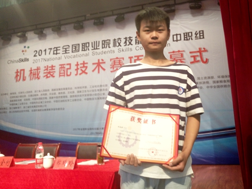 6月1日--4日,2017年全国职业院校技能大赛中职组“机械装配技术”赛项在浙江机电职业技术学院顺利举办,来自全国27个省市34支代表队162名选手齐聚杭州参加比赛。汶上职业中专机电技术应用专业学生刘龙涛代表山东省参赛。在孙树银老师规范和专业的指导下,在学生认真和刻苦的训练下,通过紧张而又激烈的比赛,最终获得该项目二等奖的好成绩。
