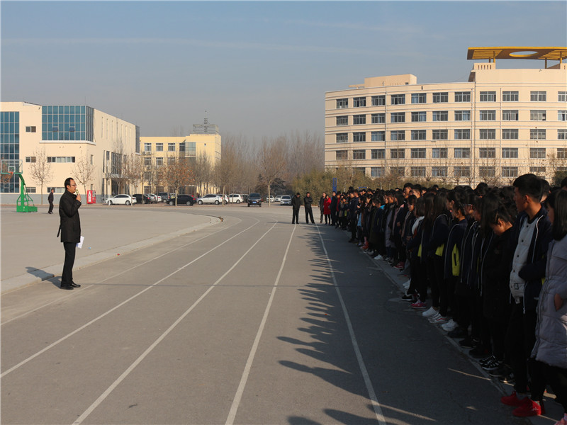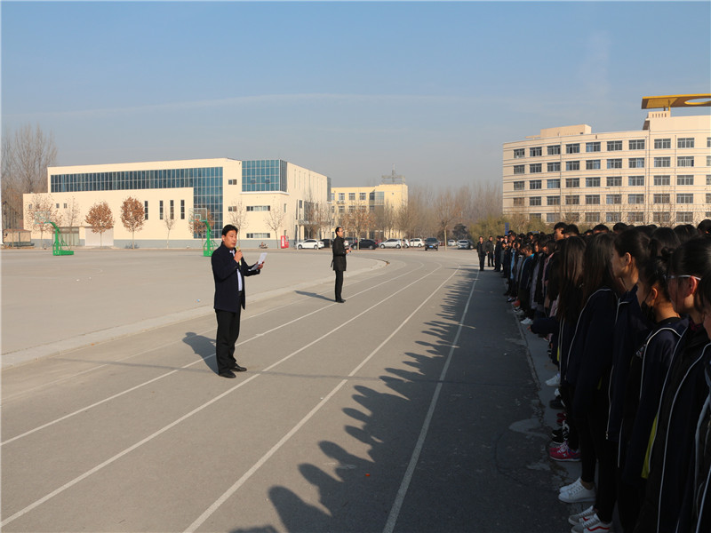 2017年12月11日上午,我校举行了以“惜时好学,改变命运”为主题的国旗下讲话活动。活动由政教处主任高海波主持。副校长李秀亮同志、班主任代表刘安元老师、学生代表张钟齐同学分别发表了演讲。学校全体班主任及全体同学参加。