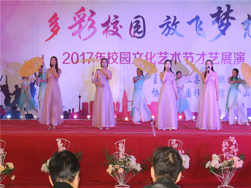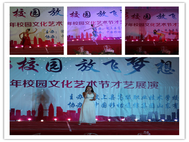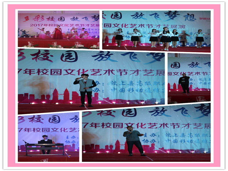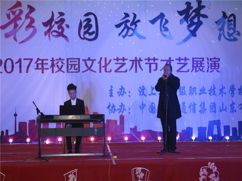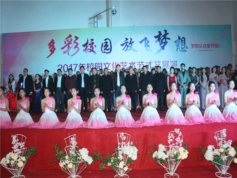 12月28日下午,县高职校以“多彩校园 放飞梦想”为主题的2017年校园文化艺术节才艺展演活动,在学校文体馆一楼隆重举行。县教育局局长姬广乐、团县委纪检组长王翔、县移动公司总经理史晓强等领导应邀参加活动,县高职校校长李同斌及班子成员陪同观看。
