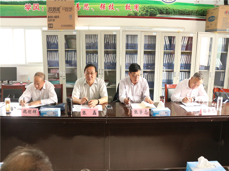 5月24日上午,市教育科学研究院职教部张磊主任一行4人莅临我校调研指导工作。学校党委书记、校长李同斌、县教体局教研室副主任刘敦耀、副校长李秀亮在学校会议室参加座谈交流。