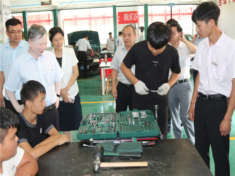 考察团一行参观了我校汽车维修实训车间、车工实训车间等实训场所。李校长介绍了我校的办学理念、教师队伍、学生队伍、社会培训、办学成绩等方面内容。