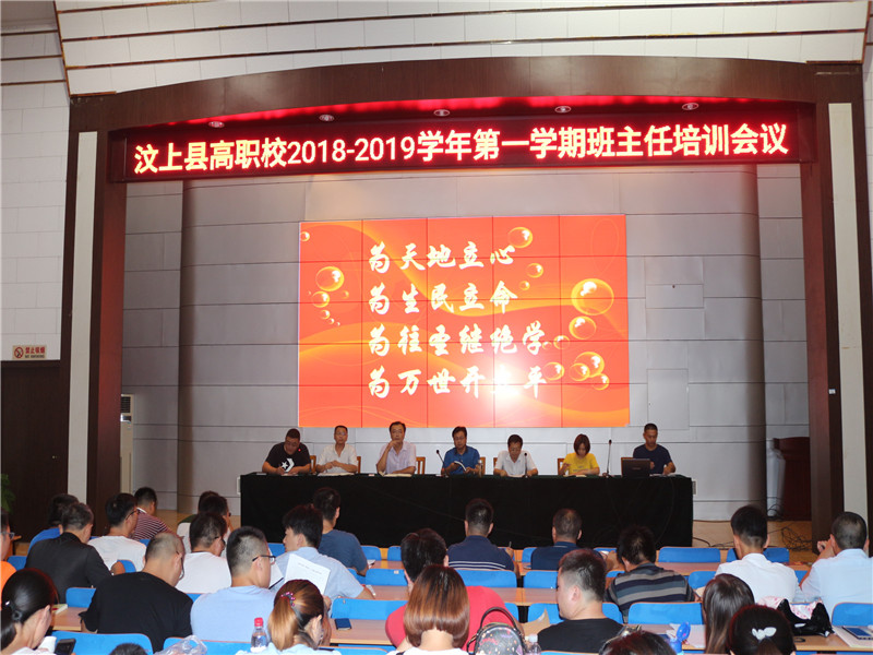 新学年、新学期、新气象,为适应新的教育形形势,8月29日下午14:00,汶上县高级职业技术学校在学校报告厅召开了2018-2019学年度第一学期班主任培训会议。会议由政教处主任高海波主持,政教处全体成员、学校学生资助中心孟主任及全体班主任参加了本次培训。校党委委员、副校长郭克华同志出席会议并作了重要讲话。